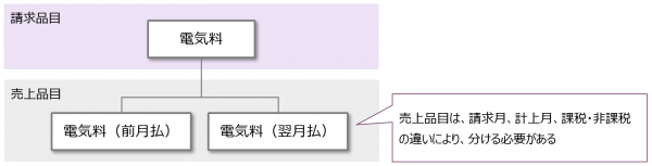 請求品目は、売上品目の大分類となり、次のような関係になります。