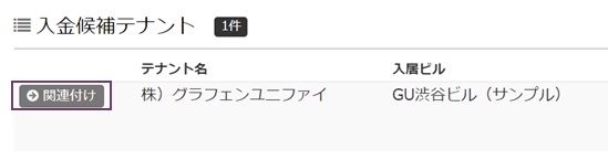 4.下部の入金候補テナントから、対象のテナントの「関連付け」ボタンをクリックします。