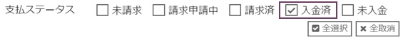 2.実績検索画面の「支払ステータス」の「入金済」をチェックし、「検索」ボタンをクリックします。
