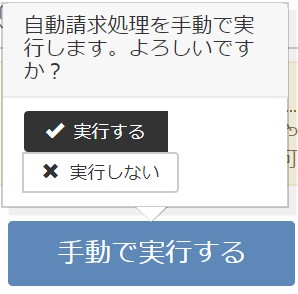 「自動請求処理を手動で実行します。よろしいですか?」の吹き出しの「実行する」ボタンをクリックします。