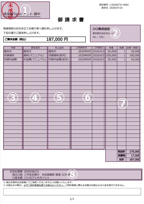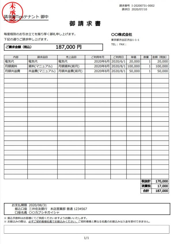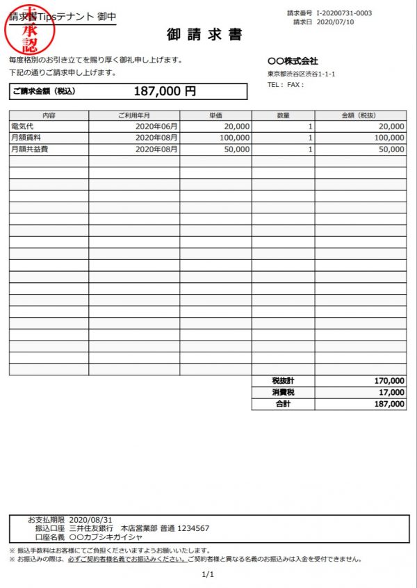 テナント名 請求書Tipsテナント