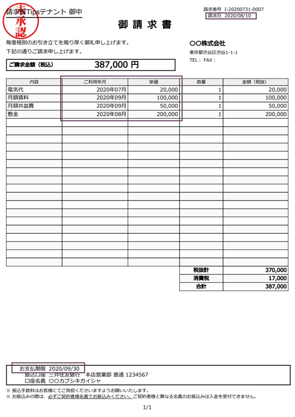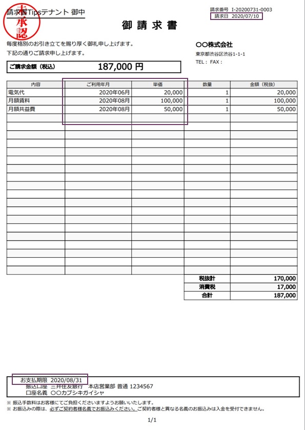 テナント名 請求書Tipsテナント